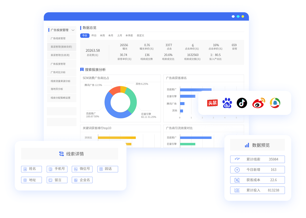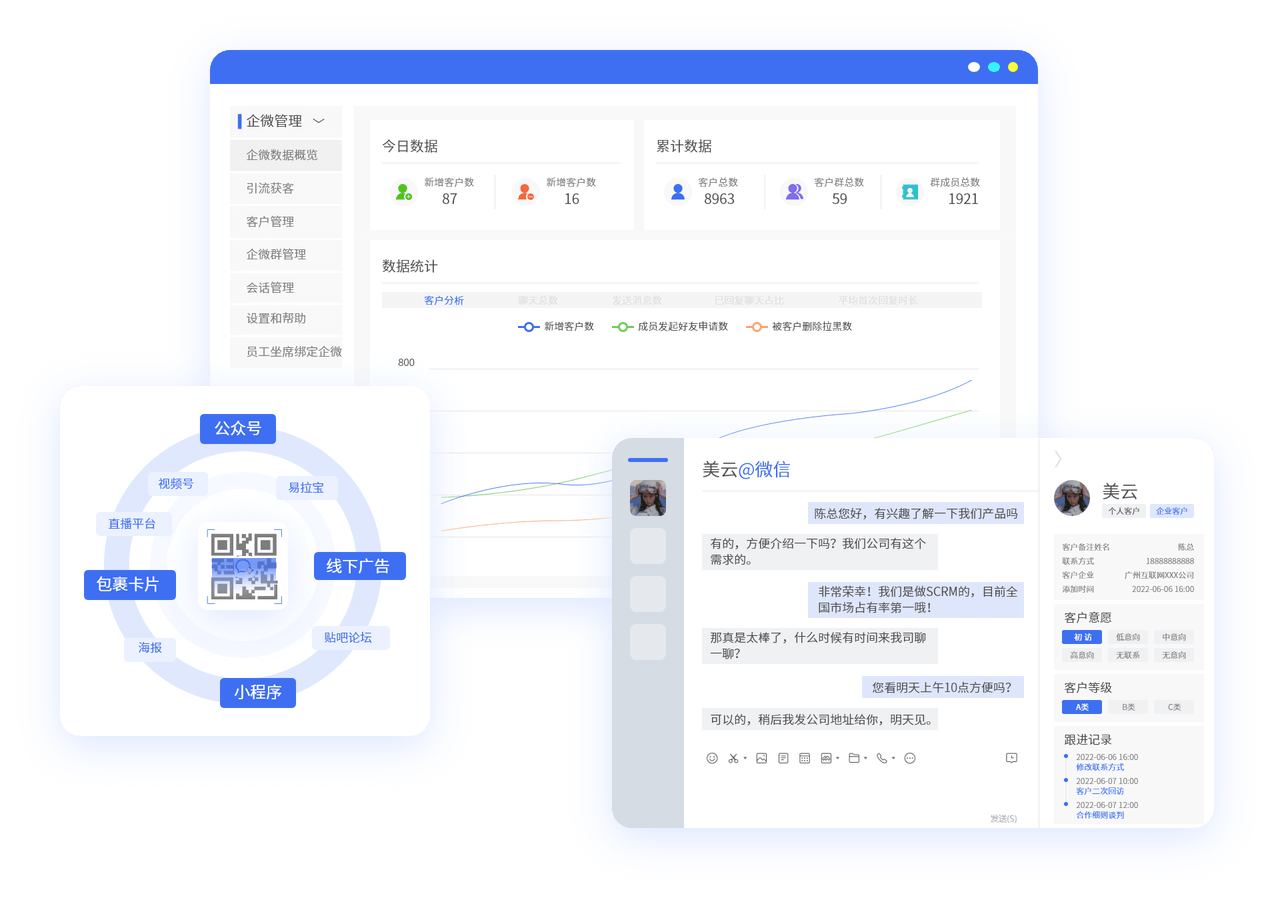 从获客、触客、管客、成交四大方面,为销售与每一个客户建立关系桥梁,从源头上提升销售整体业绩,为中小企业降本增效。